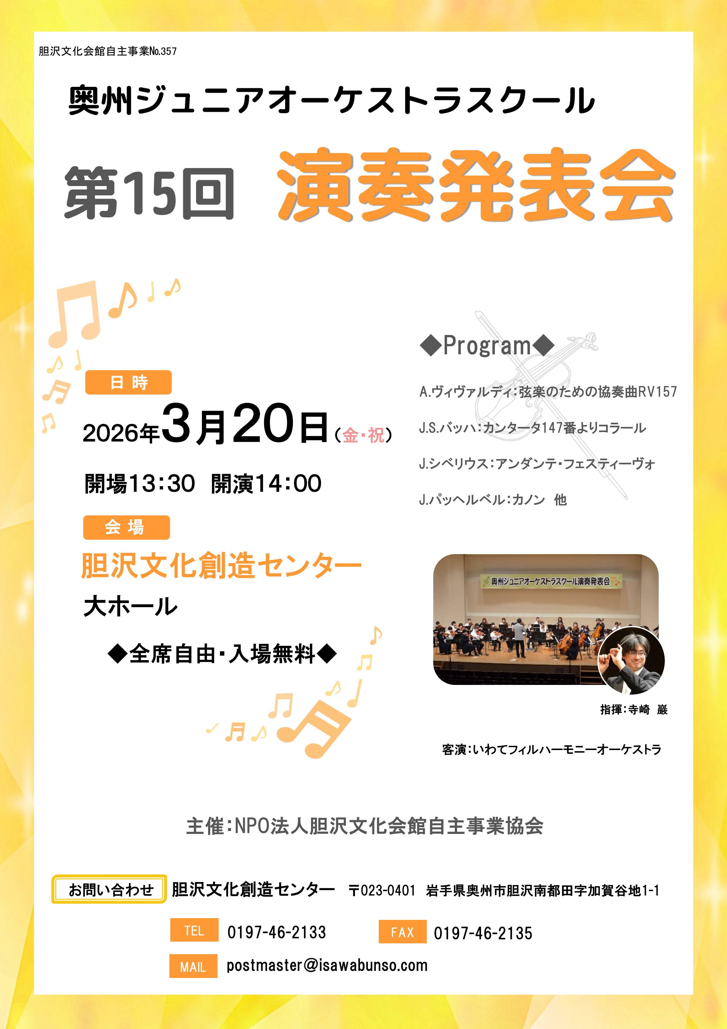 奥州ジュニアオーケストラスクール 第7回演奏発表会 【日時...